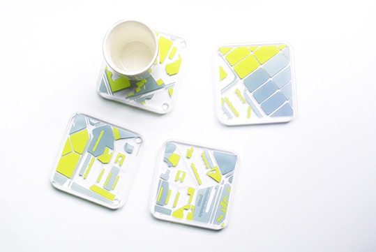 CLAROSCURO es una marca de arte y diseño de objetos y mobiliario contemporáneo hecho en Colombia, inspirado en el manejo de materiales de uso industrial para la elaboración de artículos utilitarios bajo un concepto minimalista. FRAGMENTOS DE CIUDAD es el primer artículo de la colección de Claroscuro, que consta de un juego de portavasos inspirados en los mapas de las ciudades. Este juego de portavasos esta pensado como un conjunto de fragmentos que se unen para crear una imagen reticular de la ciudad y concebido tambié n como un recuerdo de diseño alternativo para el viajero contemporáneo y amante de la ciudad.